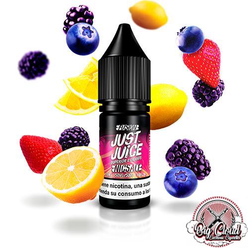 El líquido Fusion de Just Juice es una edición limitada que ofrece una explosión de sabor gracias a la mezcla de un mix de frutas refrescante, que une los líquidos Berry Burst y Lemonade. Fresa, mora y arándanos mezclados con una exquisita limonada ácida.