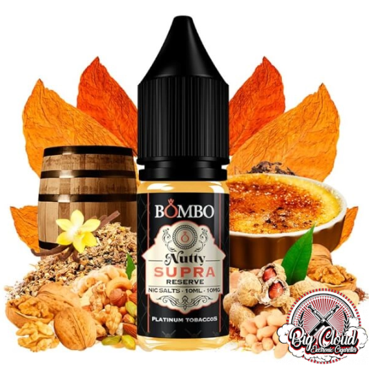 El líquido Nutty Supra Reserve de Platinum Tobaccos Nic Salts by Bombo es una variación de Supra (Mejor Tabaquil en Vapexpo 2022), famoso por su exquisito sabor a tabaco dulce con matices acaramelados y tostados, ahora combinado con deliciosa crema de frutos secos.