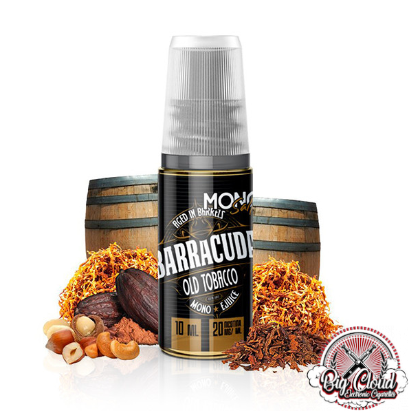 El líquido Barracuda de El Mono Vapeador y Bombo es una mezcla tabaco rubio acaramelado y seco, con una maceración de dos meses en barrica de Roble, que le confiere matices ligeros tostados y toques de frutos secos como nueces de macadamia, anacardos, avellanas y cacao.