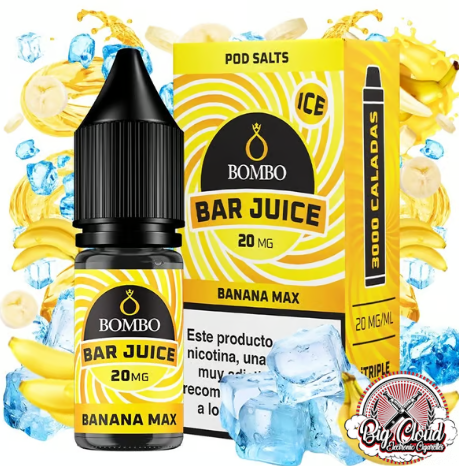 El líquido Banana Max Ice de Bar Juice Nic Salts by Bombo reproduce el sabor puro del plátano. Dulce, cremoso y con un característico toque refrescante que maximiza su sabor intenso.