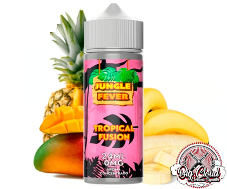 El aroma Tropical Fusion de Jungle Fever son las frutas tropicales por excelencia fusionadas para conseguir una explosión de exótico sabor en tu boca, piñabanana mango en una sola vaporada, una combinación sublime que te llevará al corazón de la jungla.