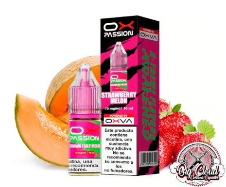 El líquido Strawberry Melon de Ox Passion by Oxva mezcla fresas dulces y maduras con la frescura y jugosidad de la sandía creando un sabor intenso y auténtico, evocando así la sensación de disfrutar de una deliciosa macedonia recién preparada en un día caluroso de verano.