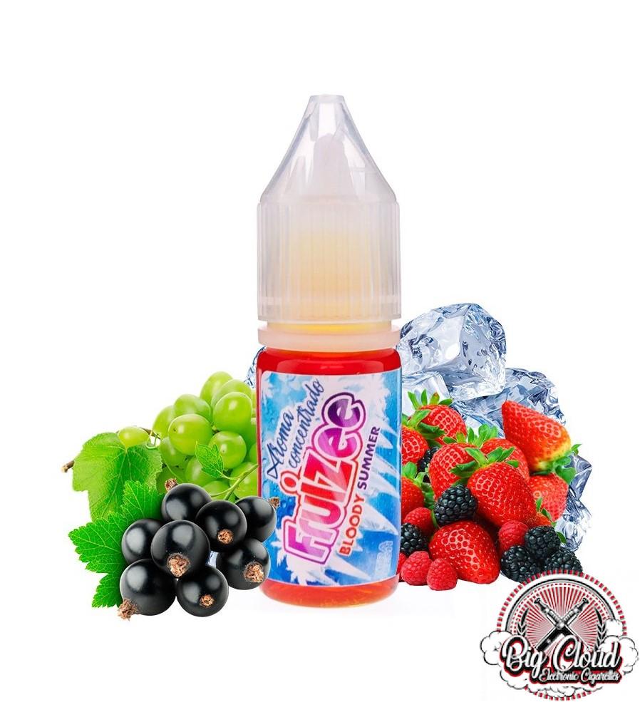El aroma Bloody Summer de Fruizee es una sabrosa e intensa mezcla frutal que combina frutos rojos, uva y grosella negra, sobre un toque de frescor.