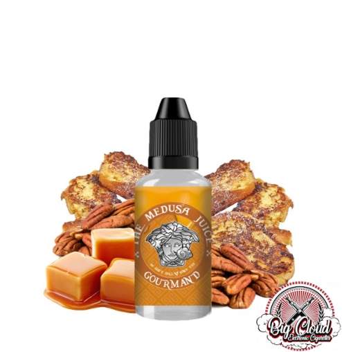 El aroma Cinema V2 de The Medusa Juice es una rica combinación de tostadas francesas con mantequilla y caramelo cubierto con nueces pecanas, una delicia para tu paladar.