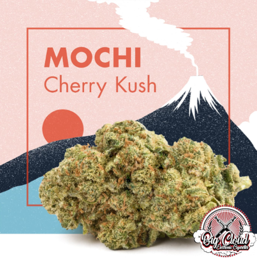La flor de cannabis Mochi aka Cherry Kush es una variedad de flor CBD edición especial. MOCHI, una flor para encontrar la plenitud en la vida, inspirada por el concepto Ikigai. Con cogollos de CBD con aroma floral y notas a cherry y tierra. Cogollos compactos de color verde claro.
