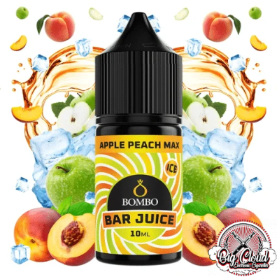 El aroma Apple Peach Max de Bar Juice by Bombo en formato MiniLongfill es la mezcla perfecta de manzana y melocotón, con una intensidad extra que multiplica el sabor.