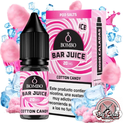 El líquido Cotton Candy Ice de Bar Juice Nic Salts by Bombo sabe al delicioso algodón de azúcar de las ferias. Un e-liquid dulce y esponjoso, con un toque ice de lo más delicioso.