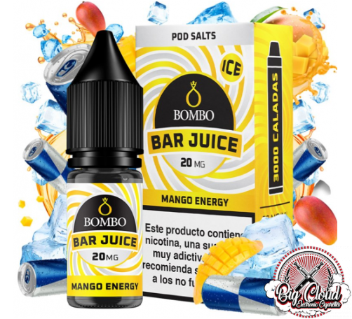 El líquido Mango Energy Ice de Bar Juice Nic Salts by Bombo conquista por su intenso sabor a mango combinado con la bebida enegética por excelencia, y un toque de refrescante hielo.