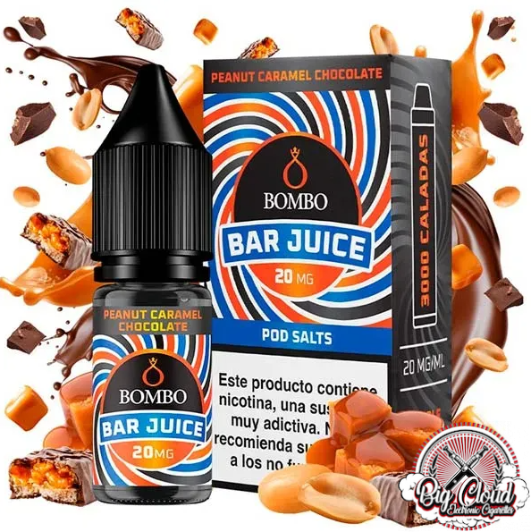 El líquido Peanut Chocolate Caramel de Bar Juice by Bombo es una combinación irresistible de cacahuete, chocolate con leche y caramelo, con un perfil dulce e intenso.
