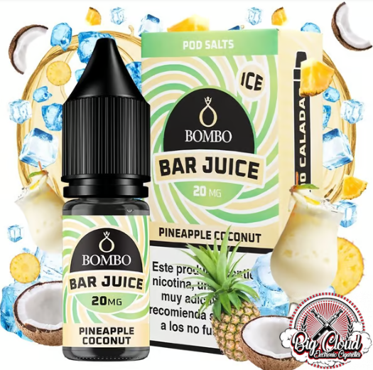 El líquido Pineapple Coconut Ice de Bar Juice Nic Salts by Bombo ofrece una mezcla tropical de jugosa piña y dulce coco, con un toque ice que añade una frescura irresistible.