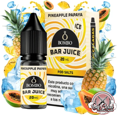 El líquido Pineapple Papaya Ice de Bar Juice Nic Salts by Bombo es una mezcla exótica, que combina la suculenta y vibrante piña, con la suave dulzura de la papaya, creando un refrescante sabor frutal inigualable.