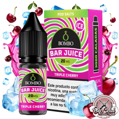 El líquido Triple Cherry Ice de Bar Juice Nic Salts by Bombo recrea el intenso sabor de las cerezas, con un toque Ice que lo hace irresistible.