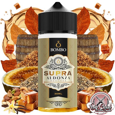 El aroma Supra Aldonza de Platinum Tobaccos by Bombo fusiona el Aldonza Reserva, que representa la excelencia, unido al más novedoso y mítico Supra Reserve, uno de los sabores más laureados de la historia. Aldonza es una equilibrada mezcla de tabacos seleccionados de manera exquisita y una excelente vainilla macerada en roble americano, un exclusivo líquido reserva con una prolongada triple maceración.