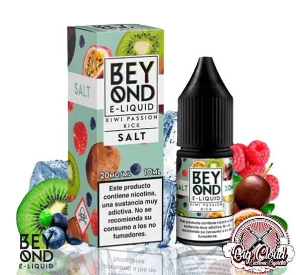El líquido Kiwi Passion Kick de Beyond Salt by IVG es un delicioso kiwi mezclado con fruta de la pasión, bayas frescas y arándanos recién recolectados, sobre un fondo helado.