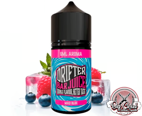 El aroma Mad Blue de la gama Drifter Bar de Juice Sauz es un inimitable sabor de dulces arándanos azules y frambuesas recién cogidas y un toque de frescor helado que las envuelve por completo.