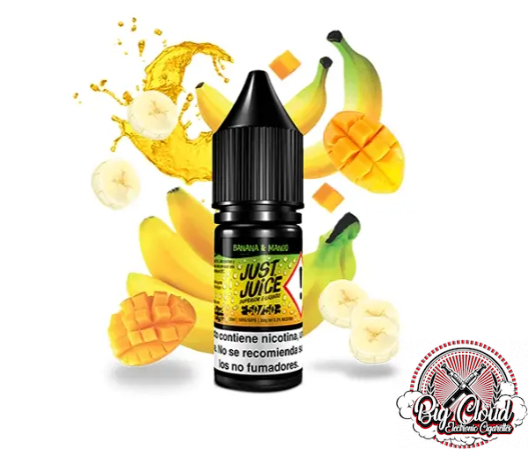 El líquido Banana & Mango de Just Juice de la gama Iconic Fruits es una deliciosa mezcla de frutas tropicales con cada inhalación. La dulzura suave y cremosa del plátano se combina perfectamente con el exótico sabor del mango y con un sutil fondo mentolado, creando una sinfonía de sabores que te transportará a playas doradas y paisajes exuberantes.