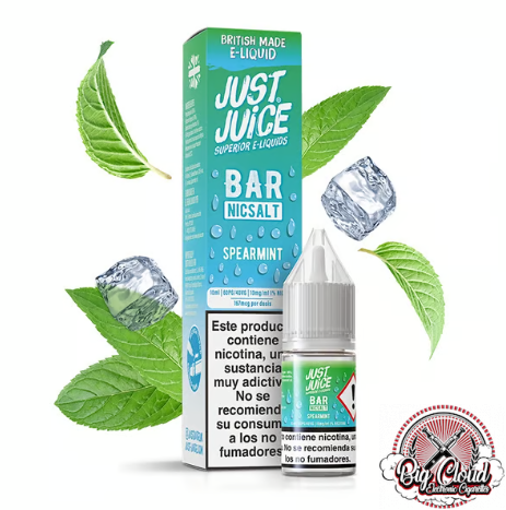 El líquido Spearmint de Just Juice Bar Nic Salt es un estallido puro de menta fresca, ideal para quienes buscan una experiencia mentolada intensa y duradera.