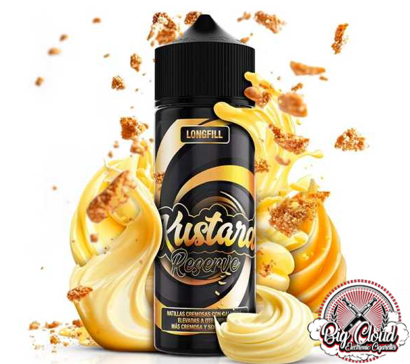 El aroma Kustard Reserve en formato Longfill de Kustard recuerda al sabor suave y cremoso de unas riquísimas natillas de vainilla y caramelo caseras, con una capa de galleta crujiente redondeado con una crema de chocolate blanco y toque muy ligero de coco ¡Contundente, cremoso y dulce, ideal para los amantes de los postres!