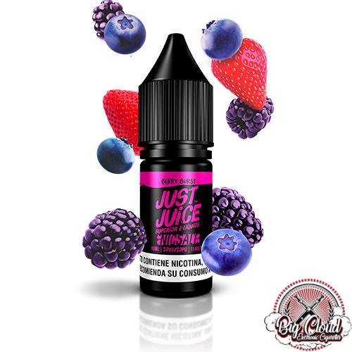 El líquido Berry Burst de Just Juice Nic Salt es una exquisita y jugosa mezcla refrescante de frutos rojos silvestres. ¿Moras? Pruébalas. ¿Arándanos? Pruébalos. ¿Fresas? Te encantará.
