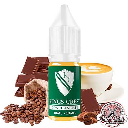 El líquido Don Juan Cafe de Kings Crest Salts sabe a Don Juan original, con un sabor intenso a café mocaccino americano con toques de chocolate que te enamorará.
