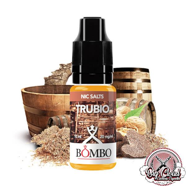El líquido Trubio de la gama Tabaquiles de Bombo Nic Salts contiene un sabor a hojas de tabaco rubio de aroma intenso, redondeado con finas trazas de cáscara de nuez y notas de barrica de Jerez, donde se pueden apreciar distintas especias y matices de trufa.